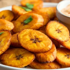 • Fry to Golden Perfection: Carefully lay the plantain slices into the pan in a single layer. Fry for 3–4 minutes on each side, or until beautifully golden and caramelized. Don’t rush this—good things take time.