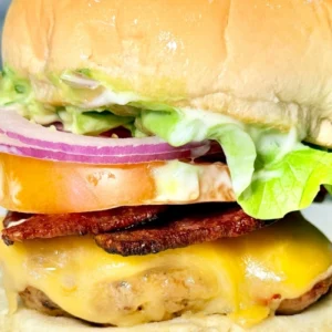 Imagine biting into a juicy, perfectly seasoned turkey sausage patty, layered with melty gouda, a soft egg, crispy turkey bacon, and all the fresh toppings your heart desires…all sitting pretty on a keto bun that actually delivers. It’s giving brunch, it’s giving balance, and it’s giving “I made something that tastes indulgent but still aligns with my goals.” This breakfast burger isn’t one of those meals that feels healthy and leaves you side-eyeing your plate… this one satisfies for real.