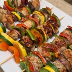 • Assemble the Skewers: Thread marinated chicken and veggies alternately onto the soaked skewers, leaving a little space between pieces so the heat can work its magic.