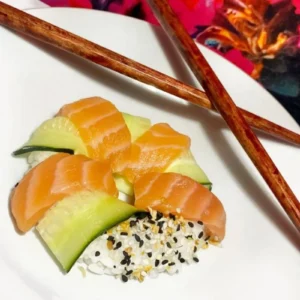 - Not into raw fish? Swap the sashimi for cooked shrimp, smoked salmon, or go full veggie mode with cucumber ribbons, pickled radish, and mango slices