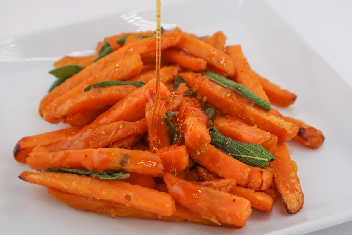 We’re talking crispy sweet potato fries dusted with smoky seasonings, drizzled with hot honey that’s got just the right amount of kick, and topped with crispy sage leaves that crackle like fall stepping into your kitchen. It’s sweet, it’s spicy, it’s savory and it’s the ultimate fry upgrade. These aren’t just the fries you want; they’re the fries you need.